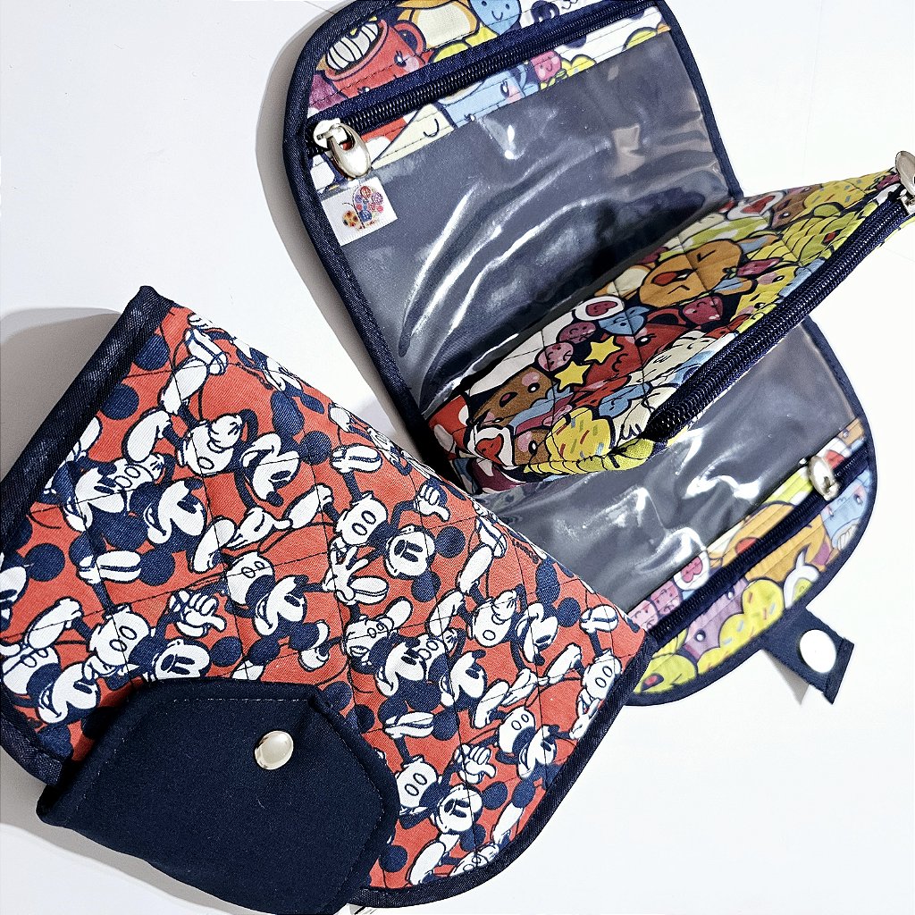 A Necessaire Farmacinha ou Porta remédios, possui 3 bolsos, sendo uma transparente de cada lado e no meio uma necessaire (fixa) de tecido.