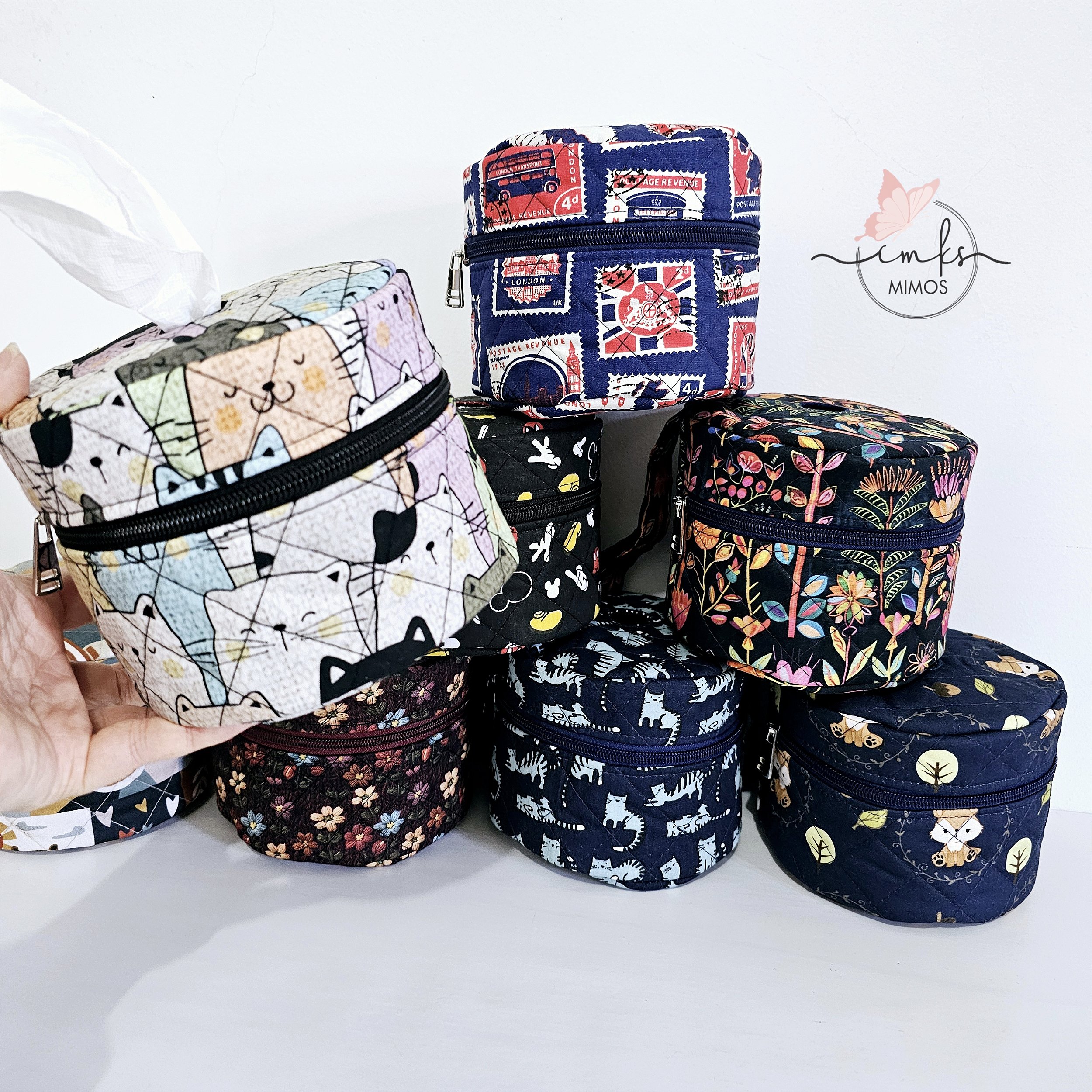 Porta Papel Higiênico de Tecido, com pequena abertura na parte de cima, ziper e alça.